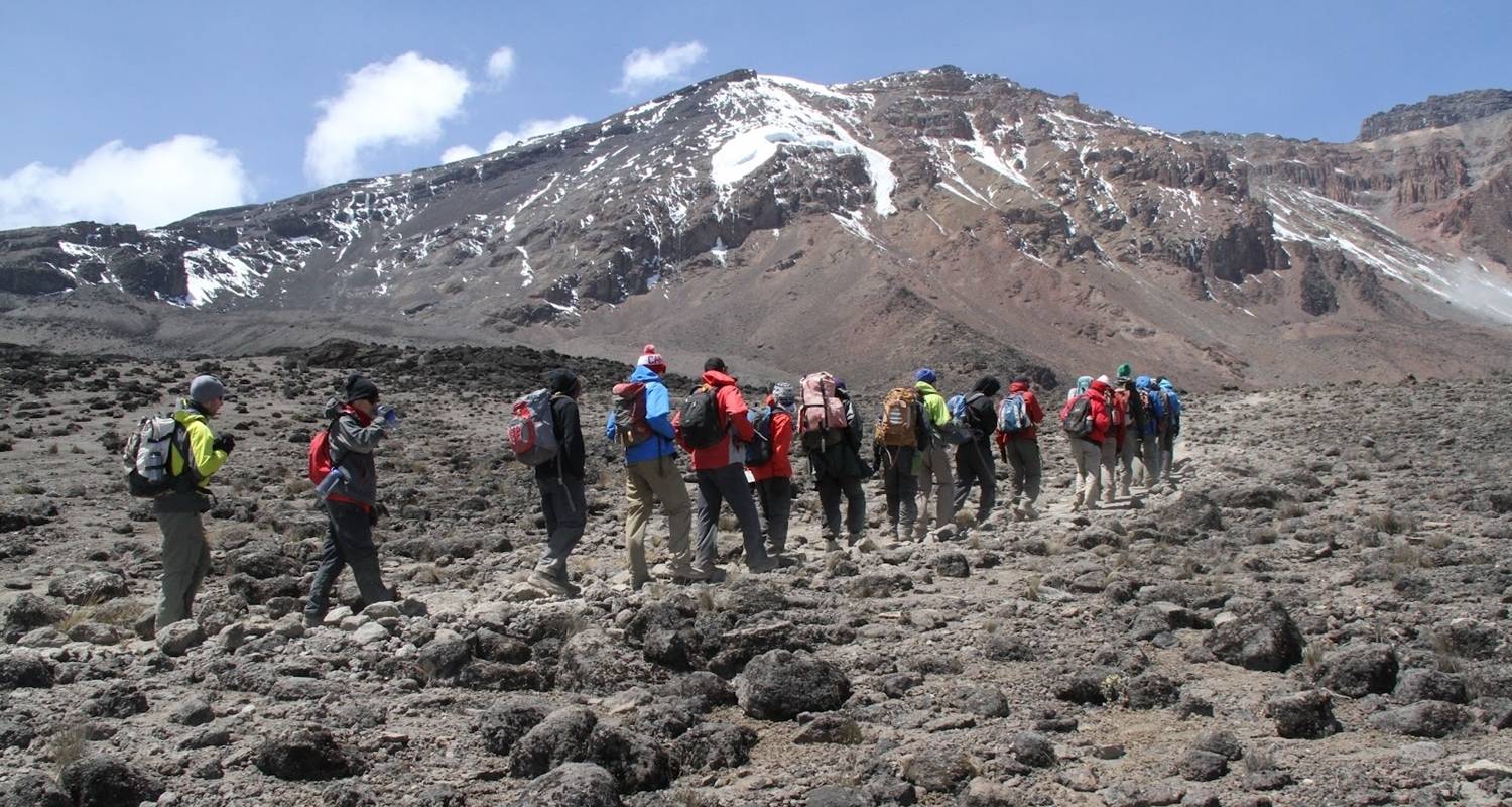 Después del desayuno, salga del Refugio Horombo y ascienda a través de los páramos y el desierto alpino de las zonas altas del Kilimanjaro. Tras ascender durante aproximadamente una hora, llegará al río Maua, un pequeño arroyo de montaña. Después de Maua, el terreno se vuelve más llano y la vegetación comienza a desaparecer. Almuerzo tipo picnic en Middle Red Hill. Después del almuerzo, continúe en ascenso constante durante dos horas más a través de la Silla del Kilimanjaro. Aunque el entorno camino a Kibo es un desierto desolado con poca vegetación, disfrutará de impresionantes vistas de los picos Kibo y Mawenzi. Llegaremos al refugio Kibo alrededor de las 15:00 horas para descansar y prepararnos para la escalada de medianoche.